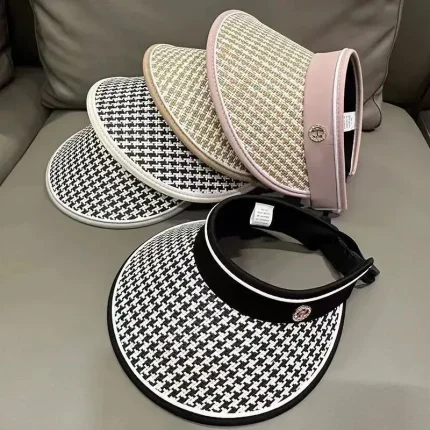 Wholesale Women Fashion Casual Straw Houndstooth Big Brim Sun Hat