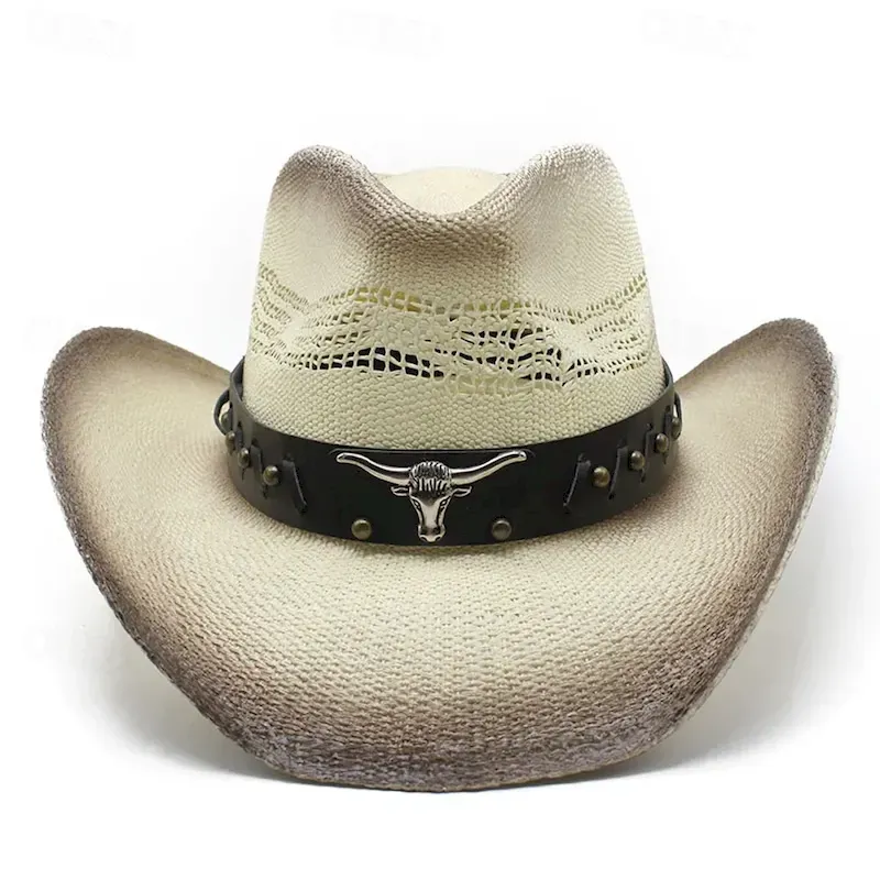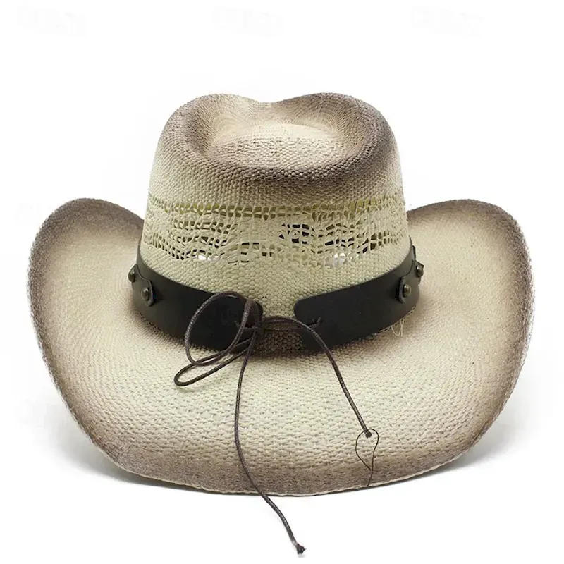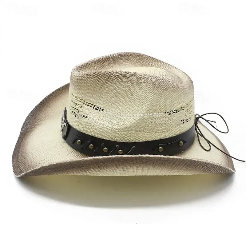 Men’s Sun Hat Cowboy Hat Fedora Trilby Hat White Black / White Straw Rope Vintage Style Fashion 18th Century State of Texas Daily Theme Party Solid /