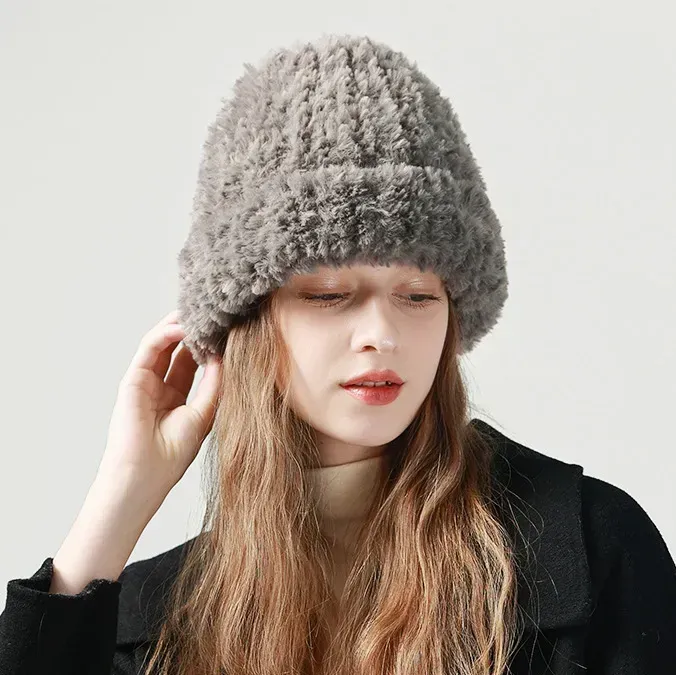 Wholesale Women Fashion Casual Winter Solid Color Cold-Proof Big-Head-Circumference Plush Wool Hat