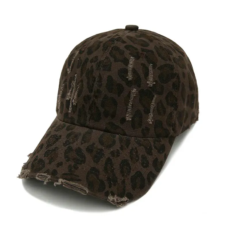 Wholesale Women Fashion Leopard Broken Hole Baseball Cap
