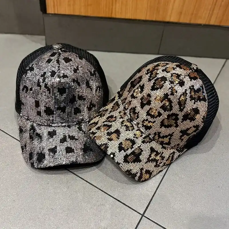 Wholesale Women Fashion Leopard Sequin Breathable Mesh Cap
