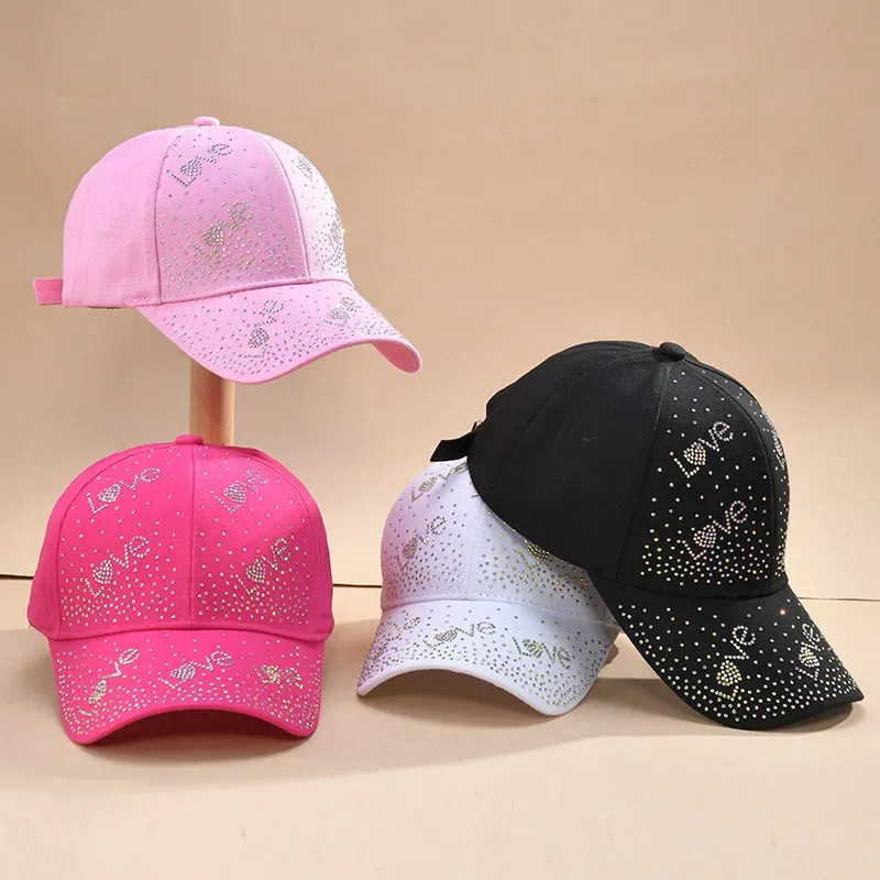 Wholesale Women Fashion Rhinestone Love Sunshade Baseball Cap