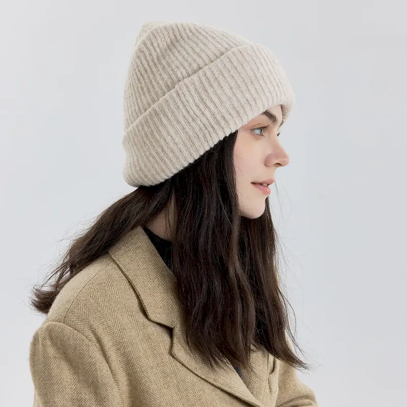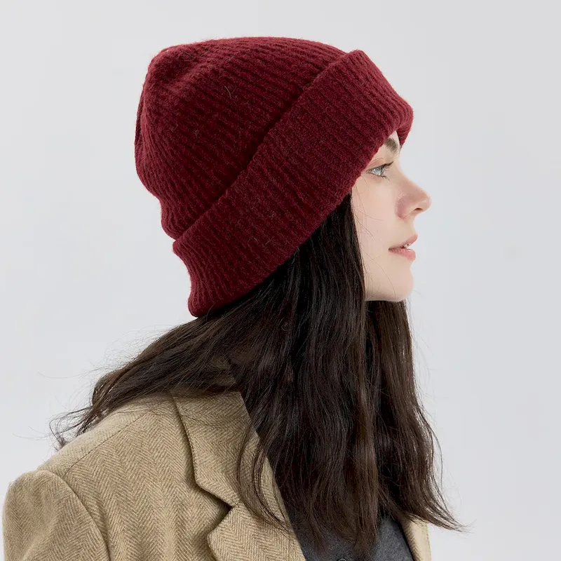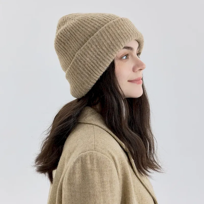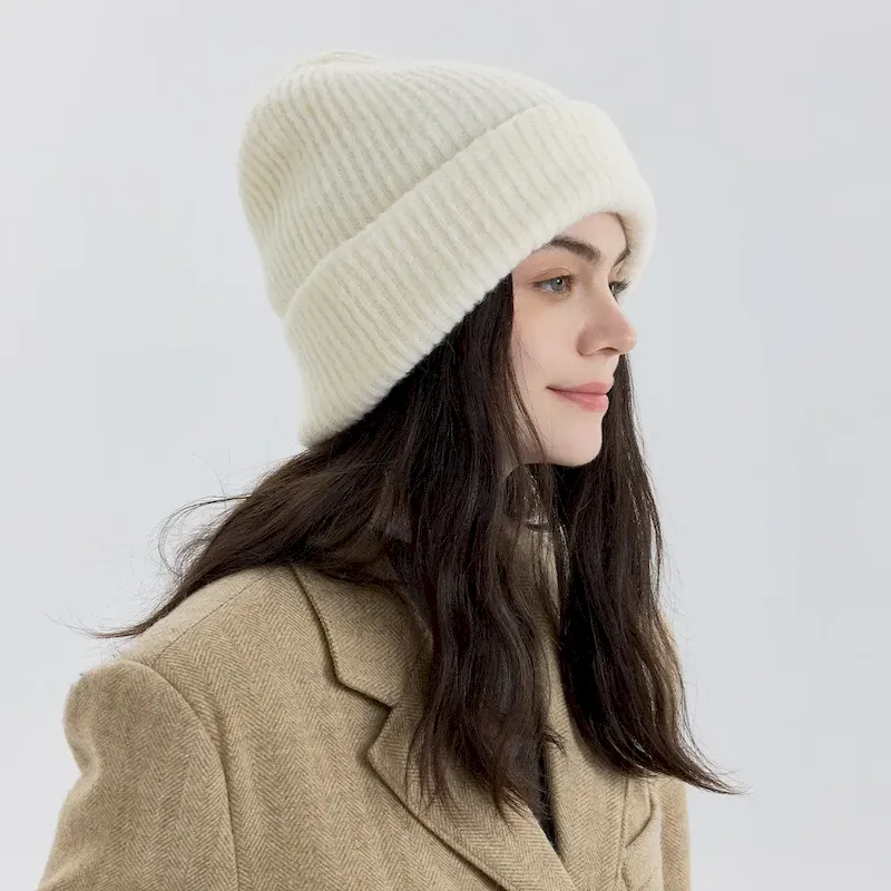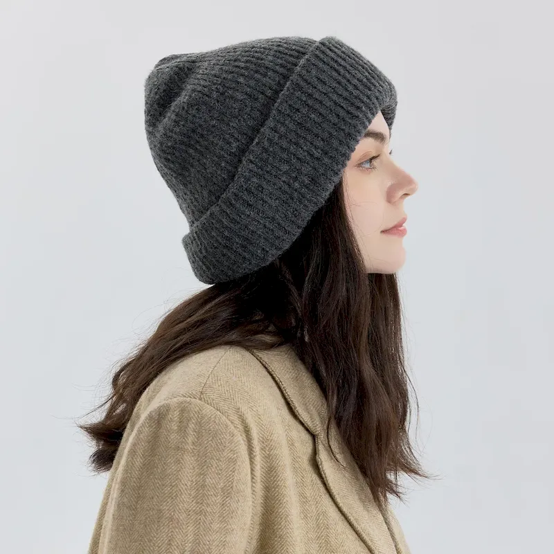 Wholesale Women Fashion Solid Color Double-Layer Thickened Knitted Hat