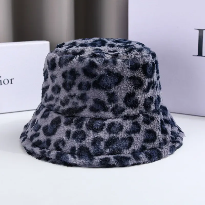 Wholesale Women Winter Leopard Print Plush Bucket Hat